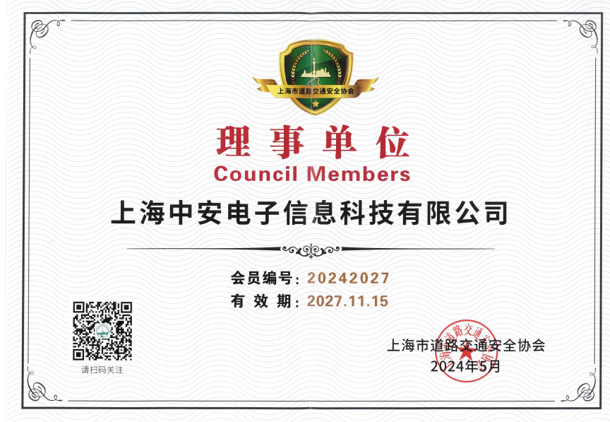 中安科技榮膺上海市道路交通安全協(xié)會(huì)理事單位稱號(2024-07-28)